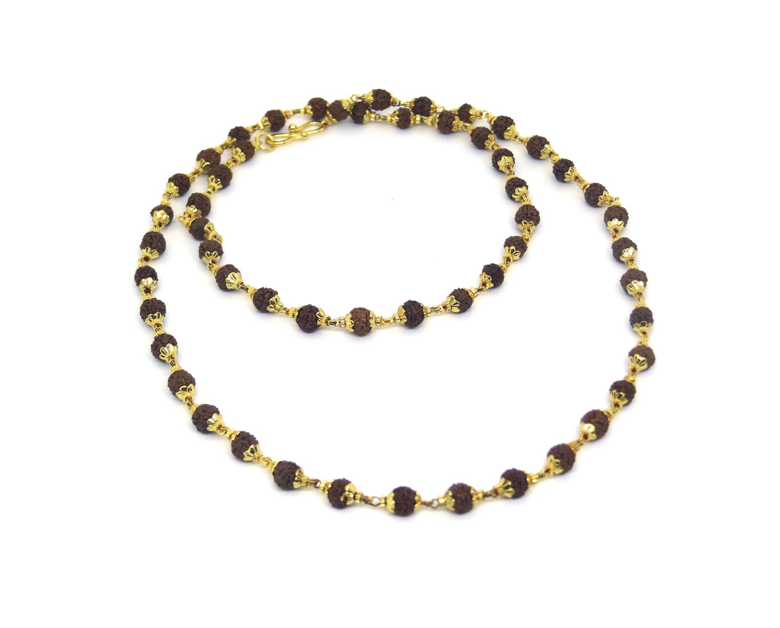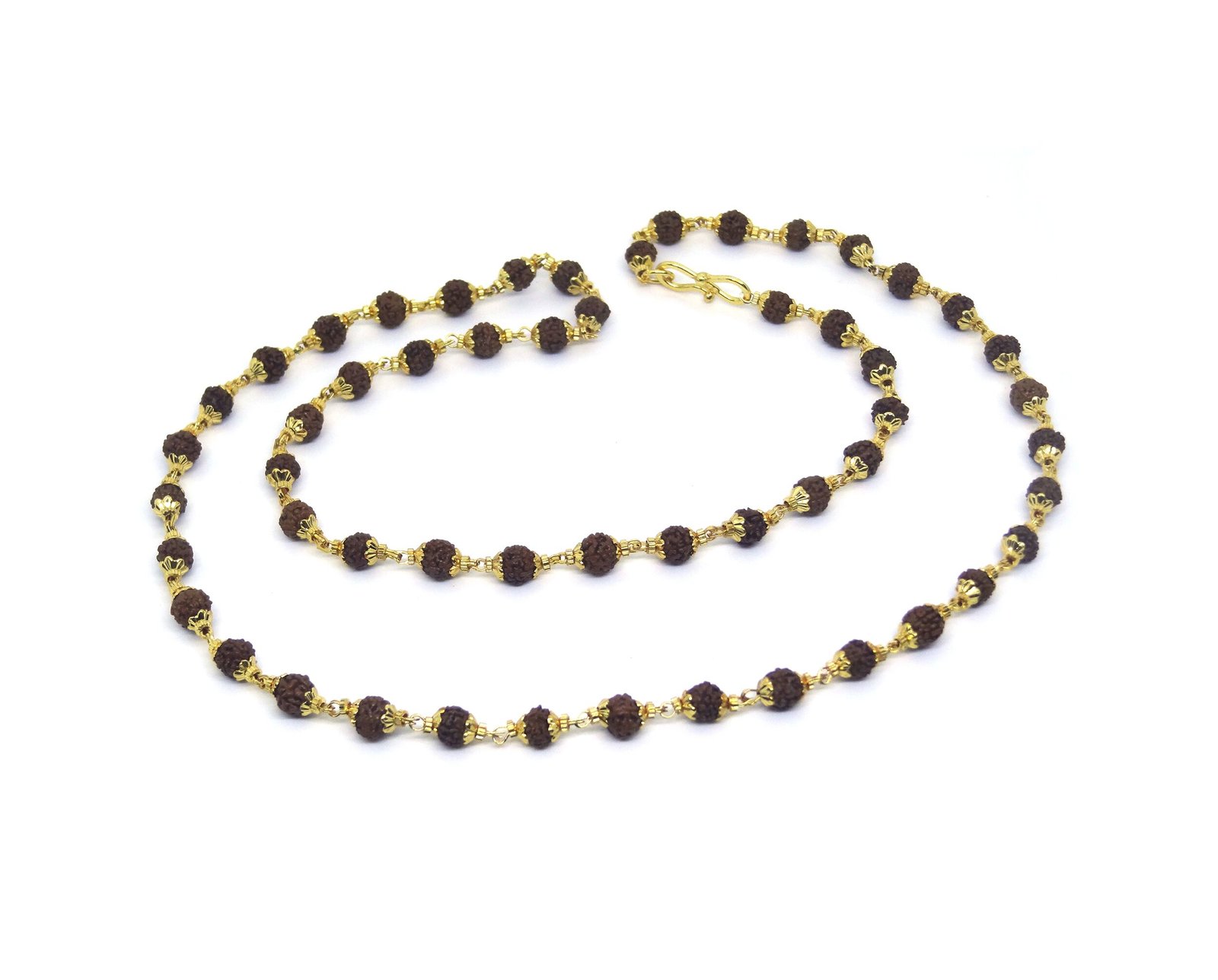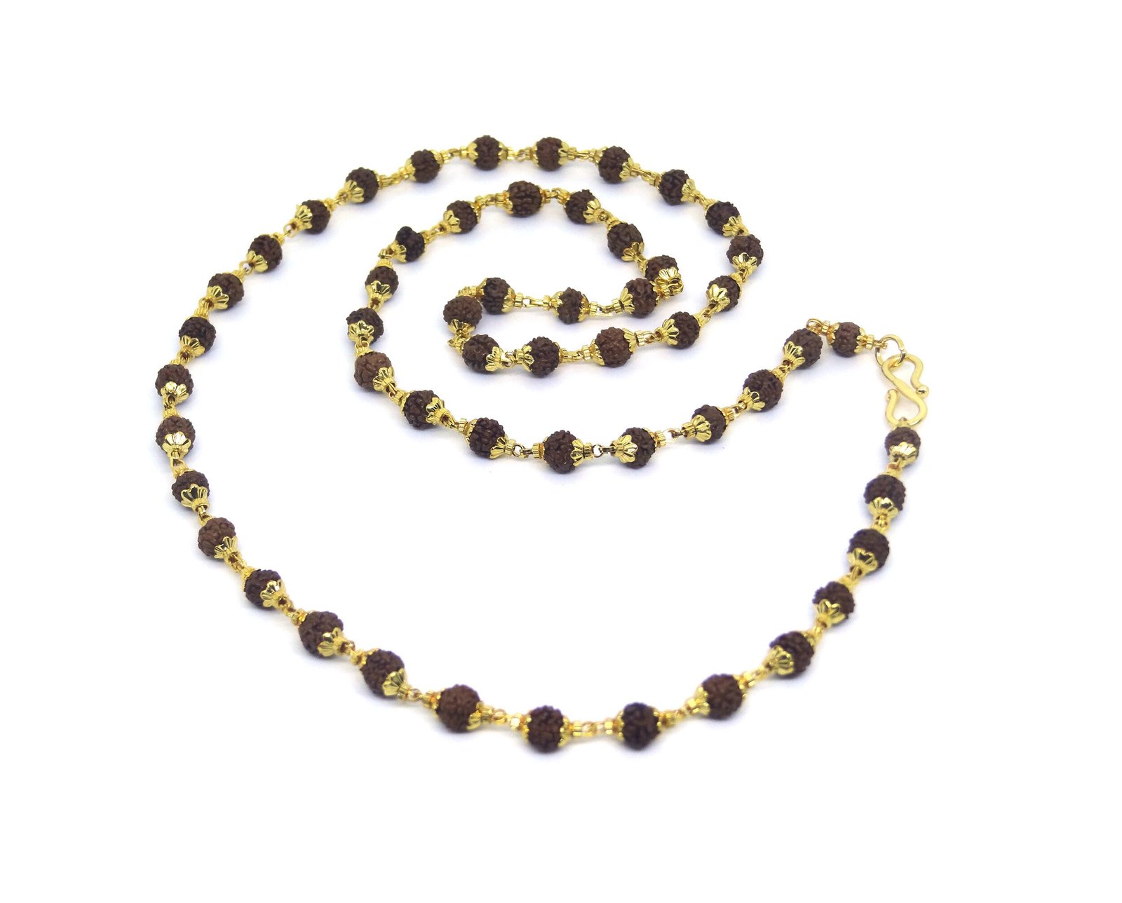 5 Mukhi Rudraksha Mala in Brass Designer Cap ( 7 MM )