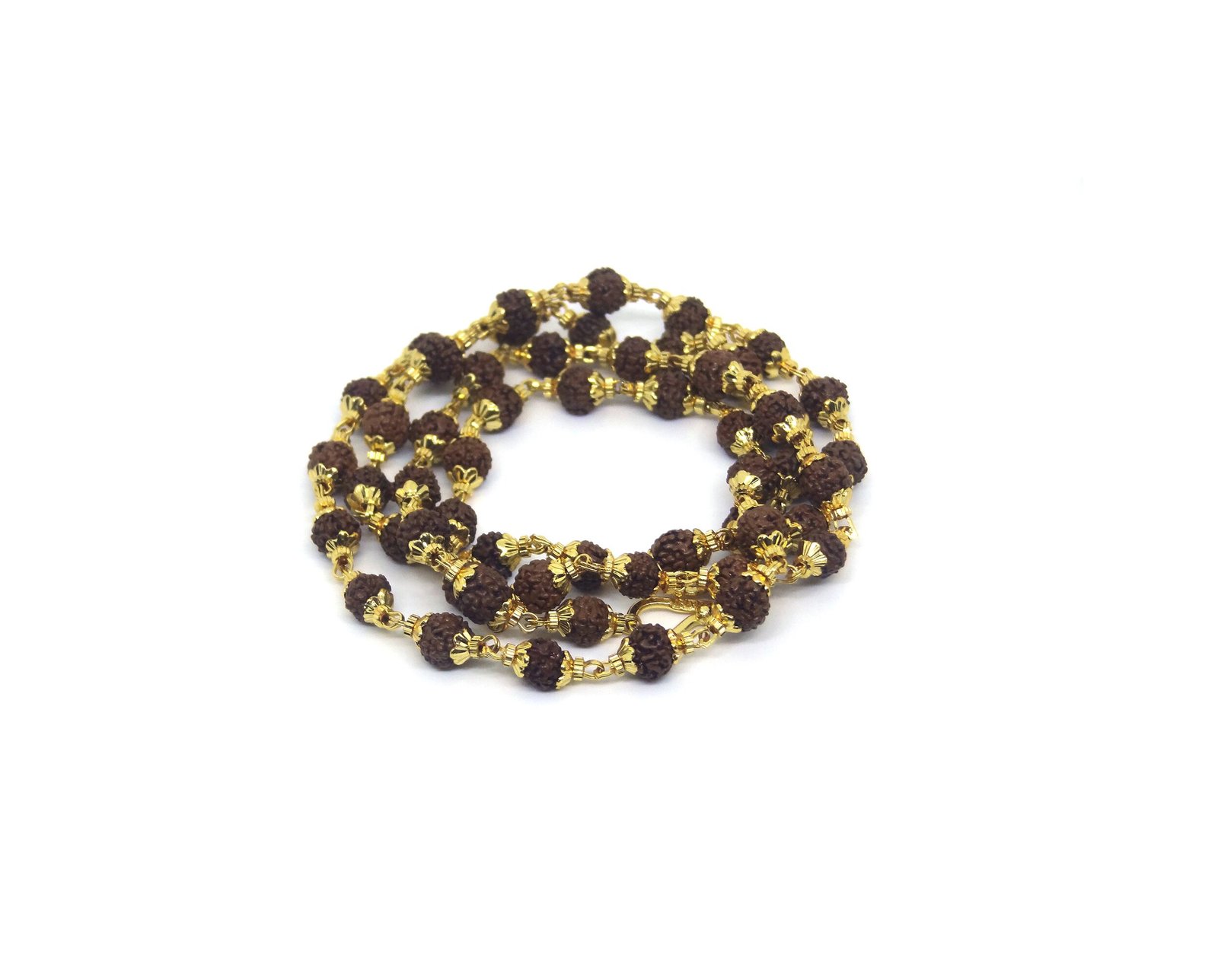 - Original 5 Mukhi Rudraksha Mala beautifully hand Knotted in gold polished brass caps .