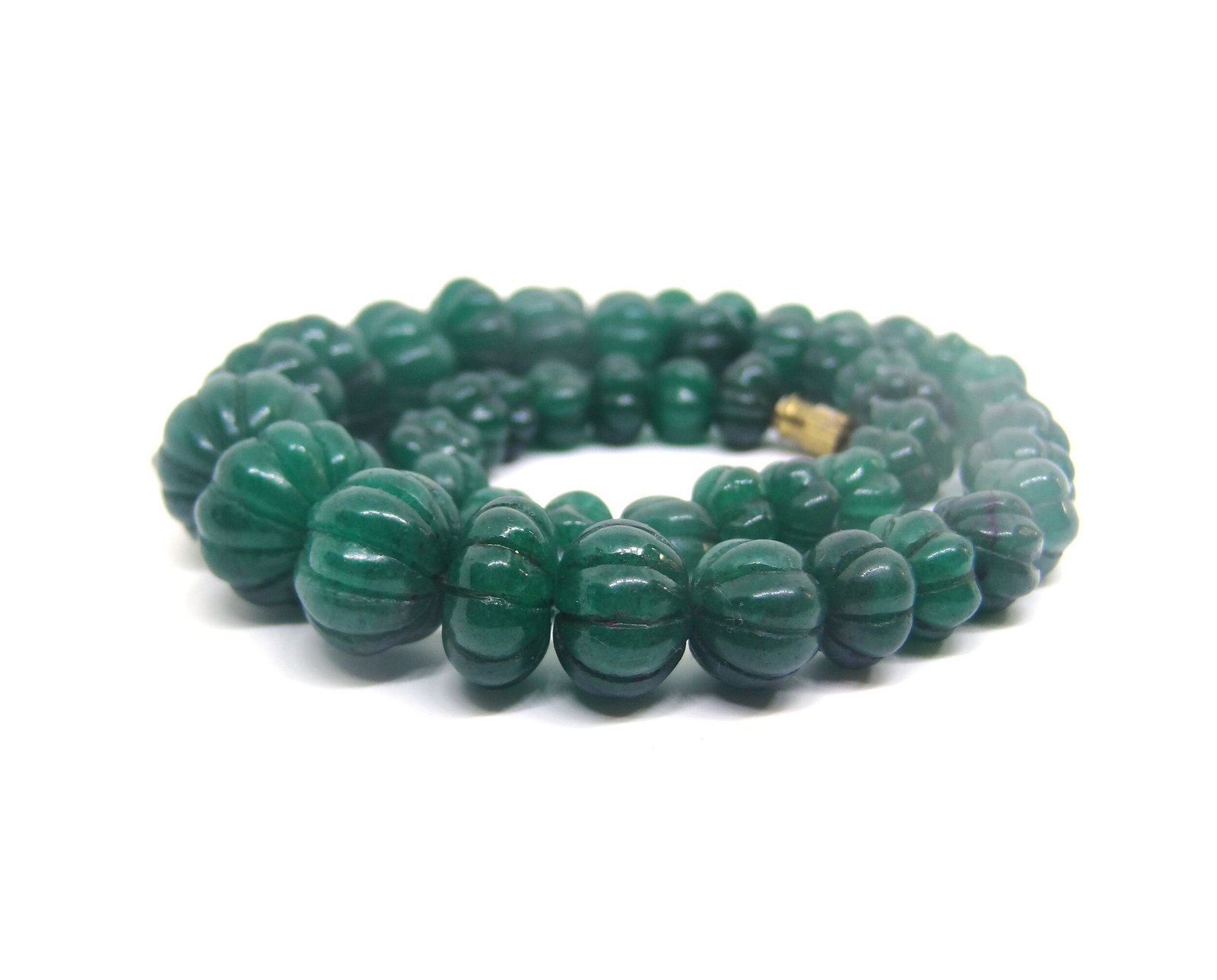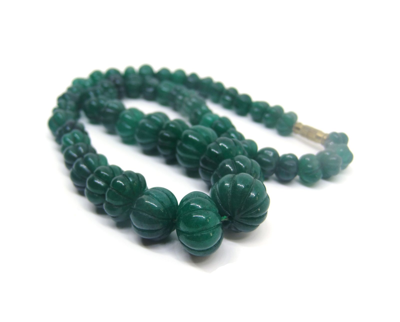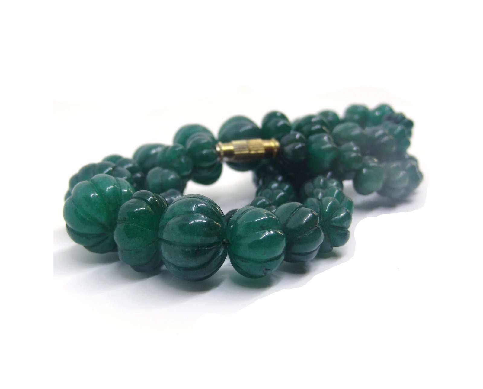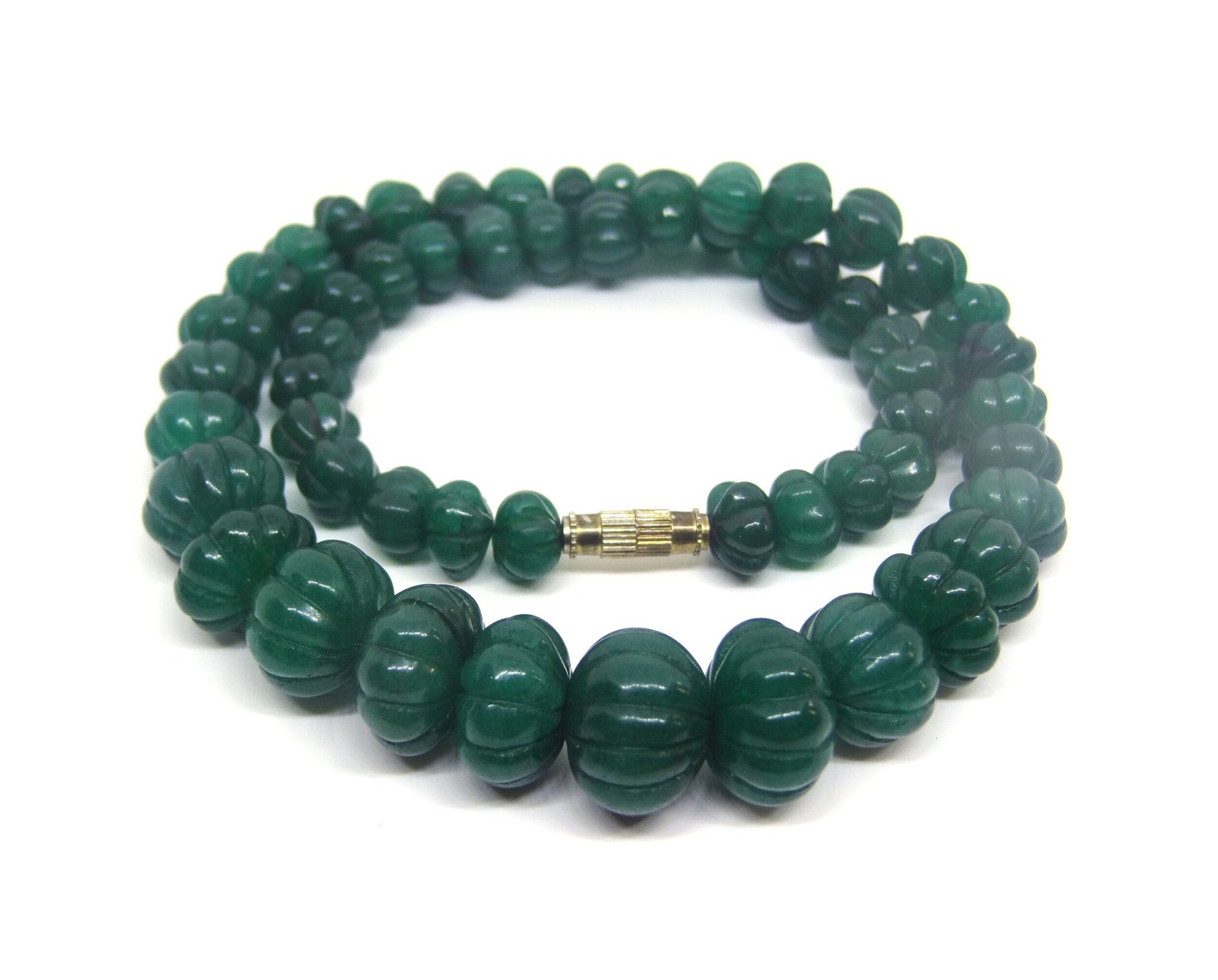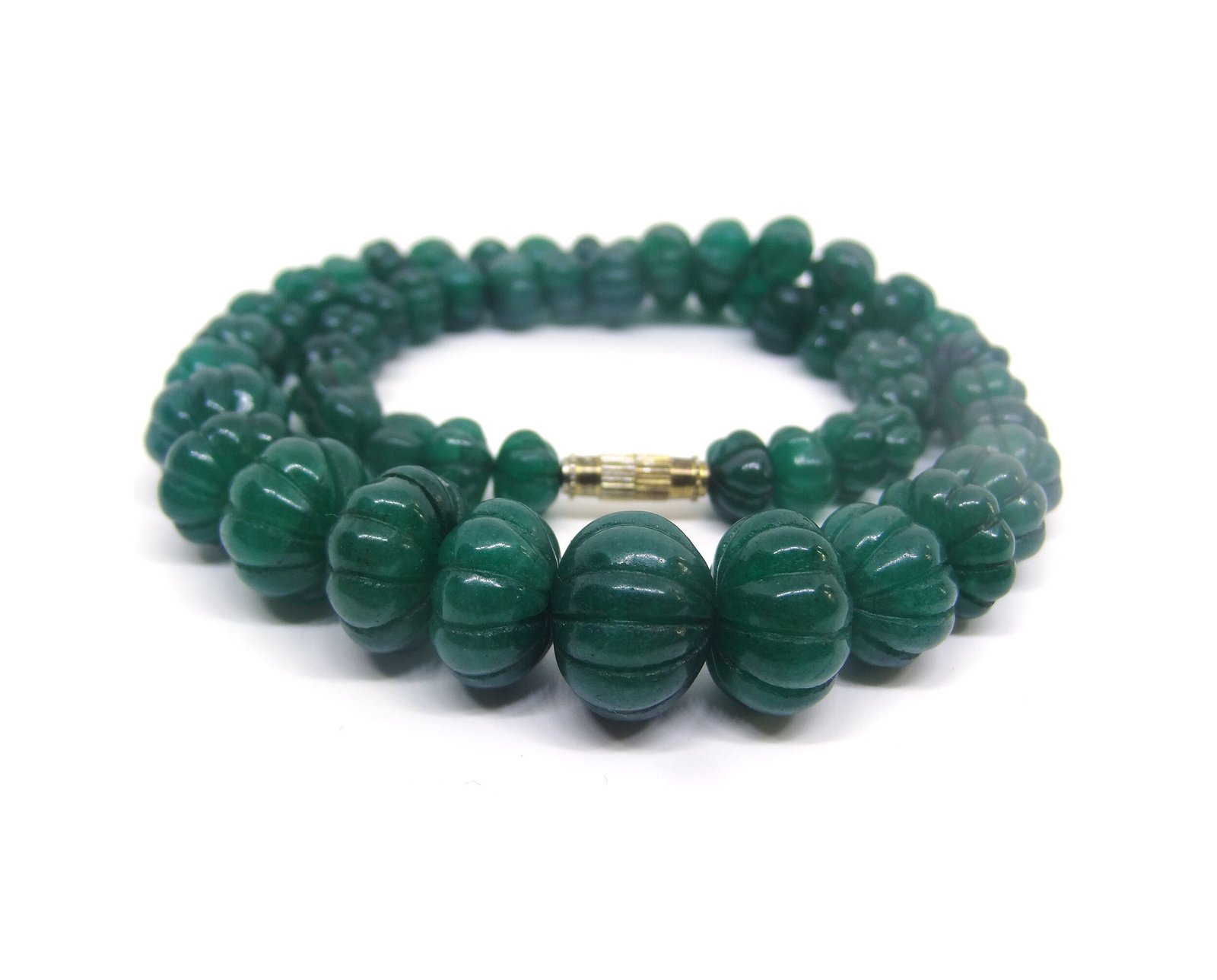 Look gorgeous with this green coloured single strand necklace. Featured with green colored round shaped beads of jade gemstone. Product consists of natural beads. Goes great with weddings and can be worn with sarees.