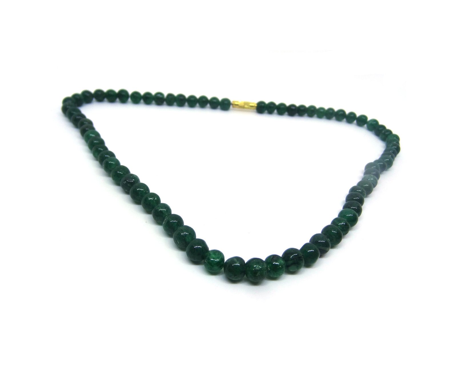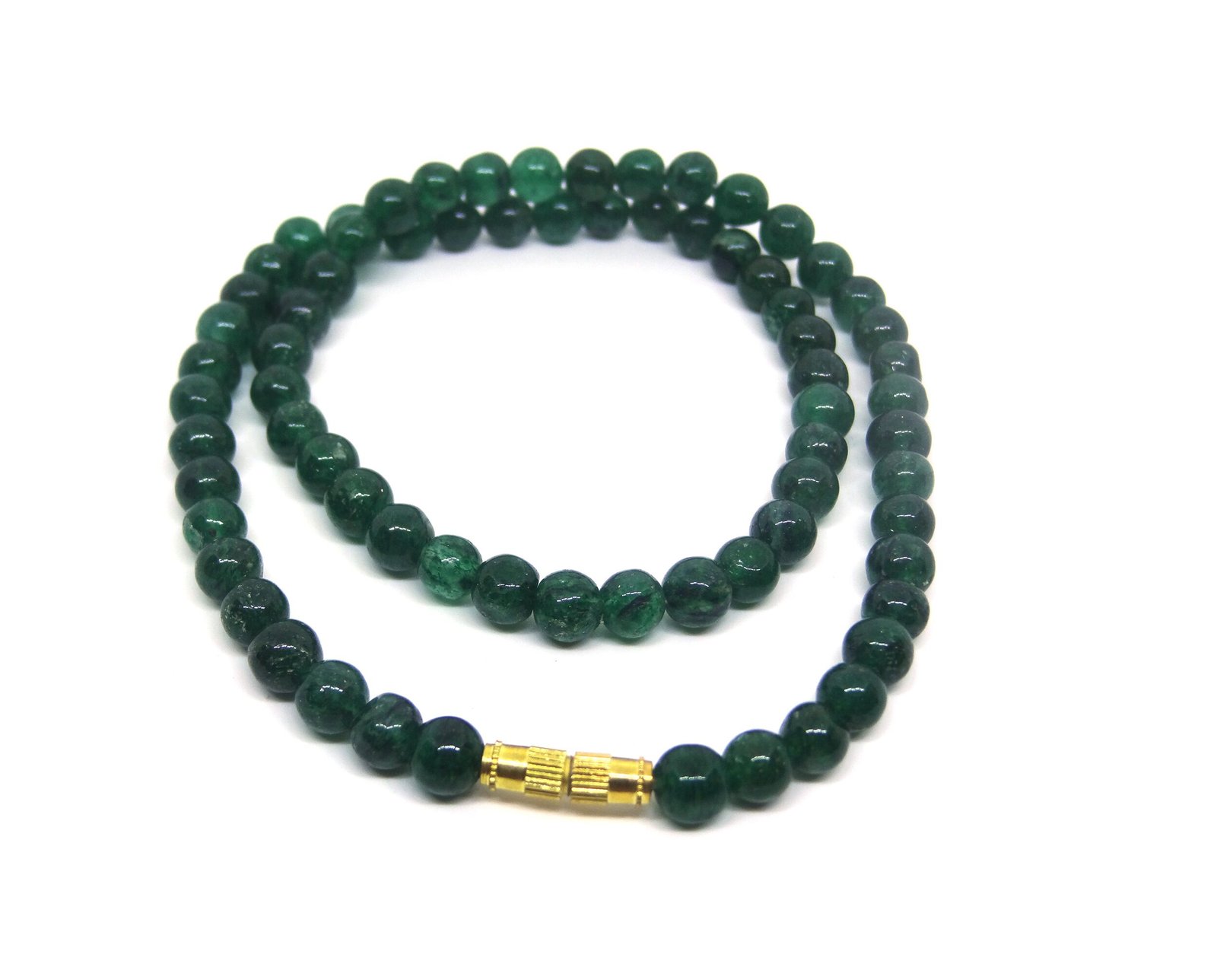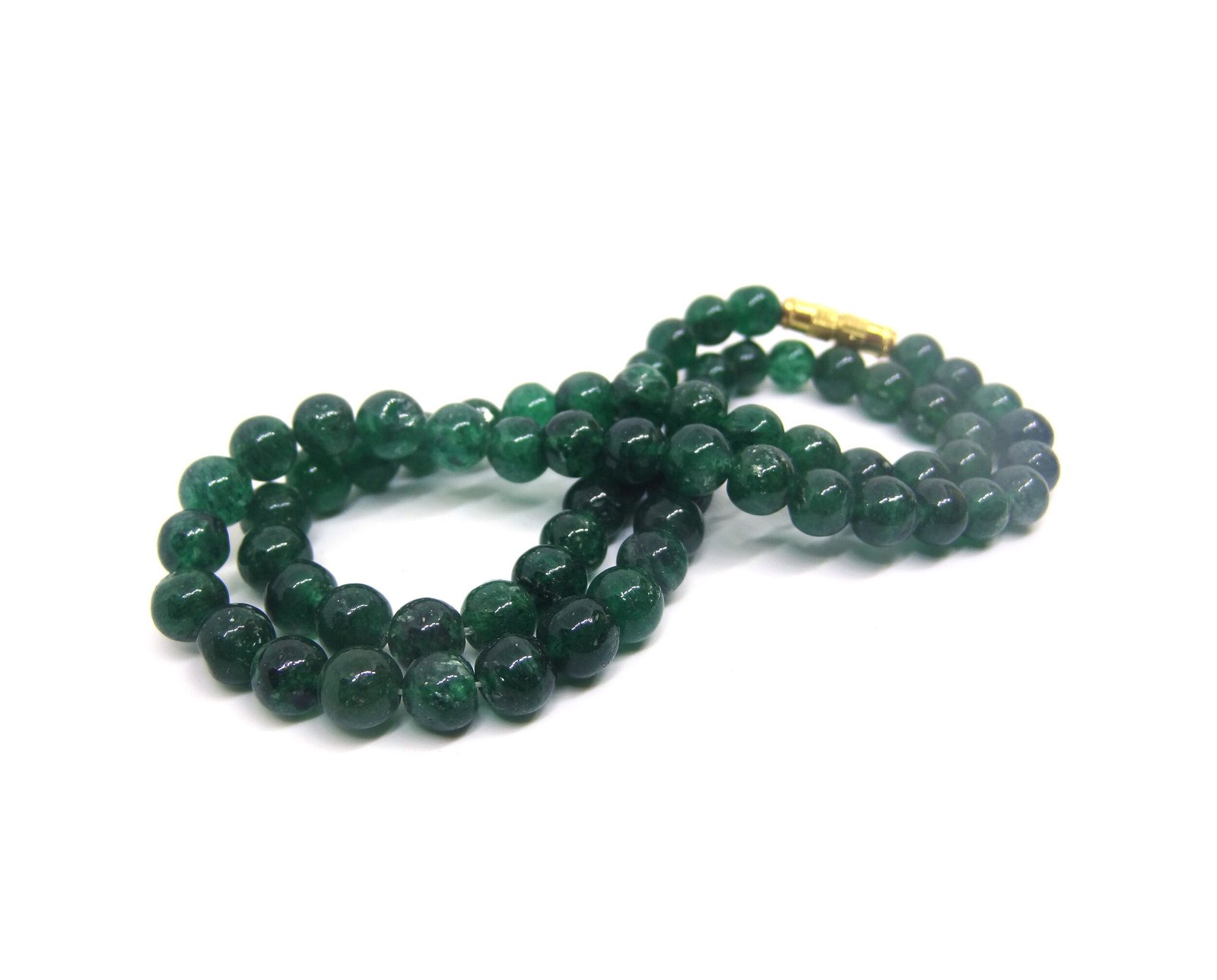 Look gorgeous with this green coloured Single strand necklace. Featured with green colored Round shaped beads of jade gemstone. Product consists of natural beads. Goes great with weddings and can be worn with Sarees.