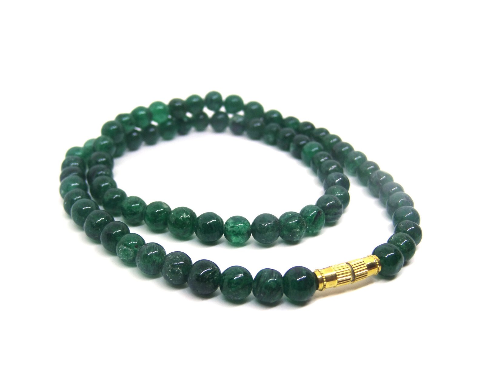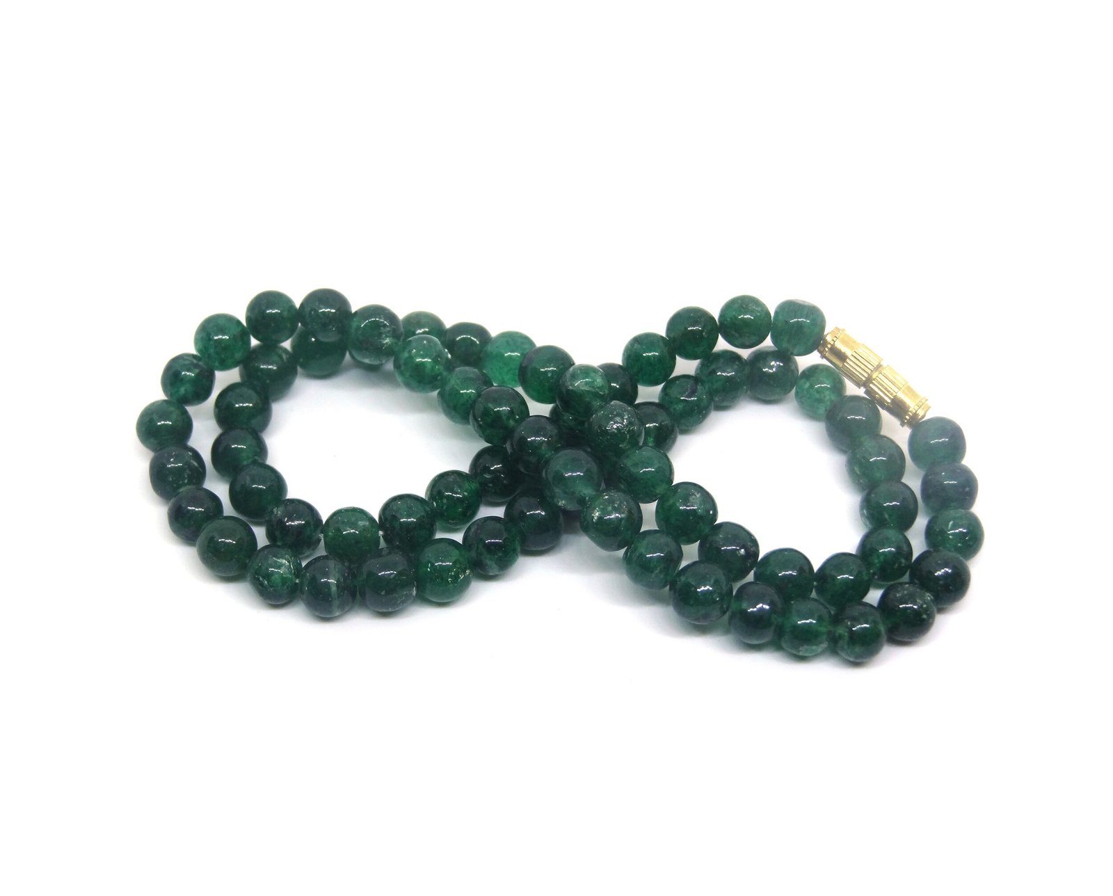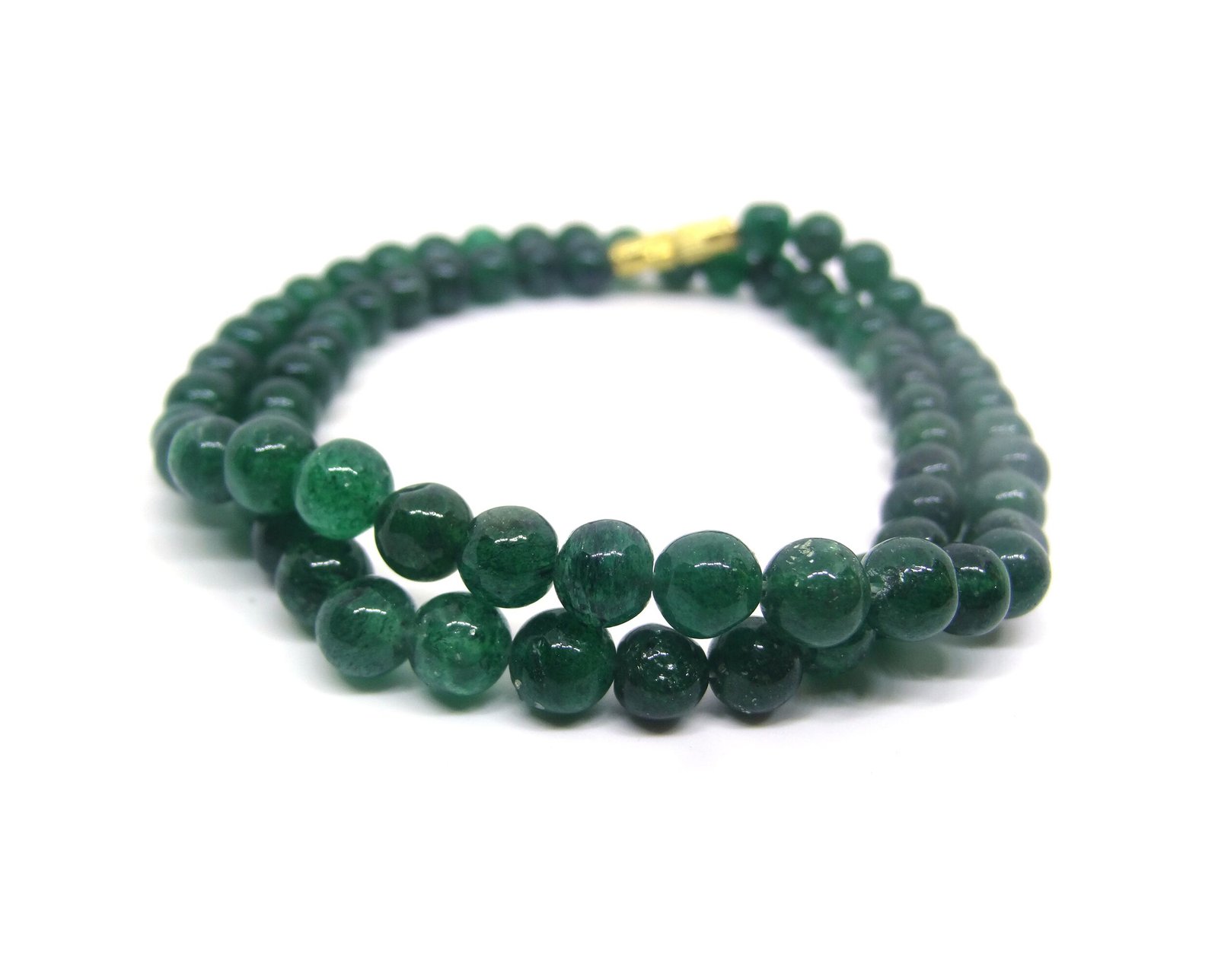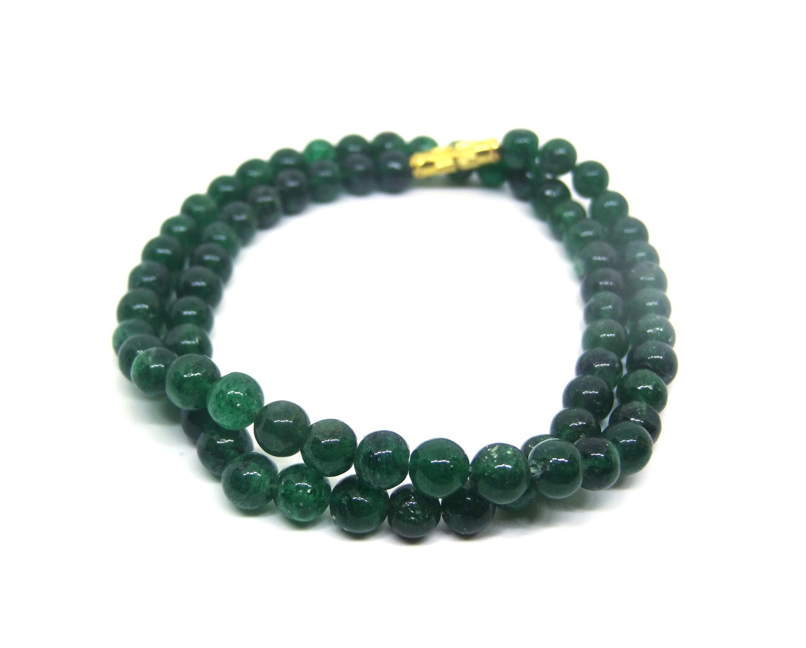 Look gorgeous with this green coloured Single strand necklace. Featured with green colored Round shaped beads of jade gemstone. Product consists of natural beads. Goes great with weddings and can be worn with Sarees.