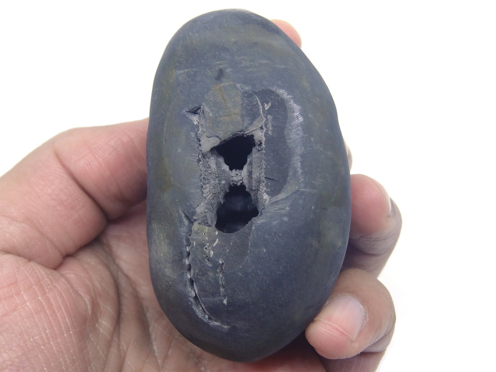 - There are some natural marks and tiny little holes in this stone which are a part of it’s characteristics. Laxmi Narayan on opposite sides can be found in the shaligram as shown in product images it is naturally occurring with no human intervention.