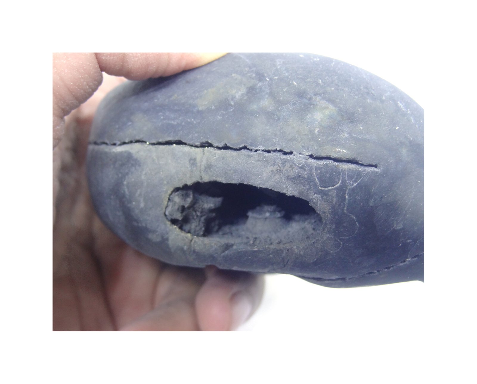 - There are some natural marks and tiny little holes in this stone which are a part of it’s characteristics. Laxmi Narayan on opposite sides can be found in the shaligram as shown in product images it is naturally occurring with no human intervention.
