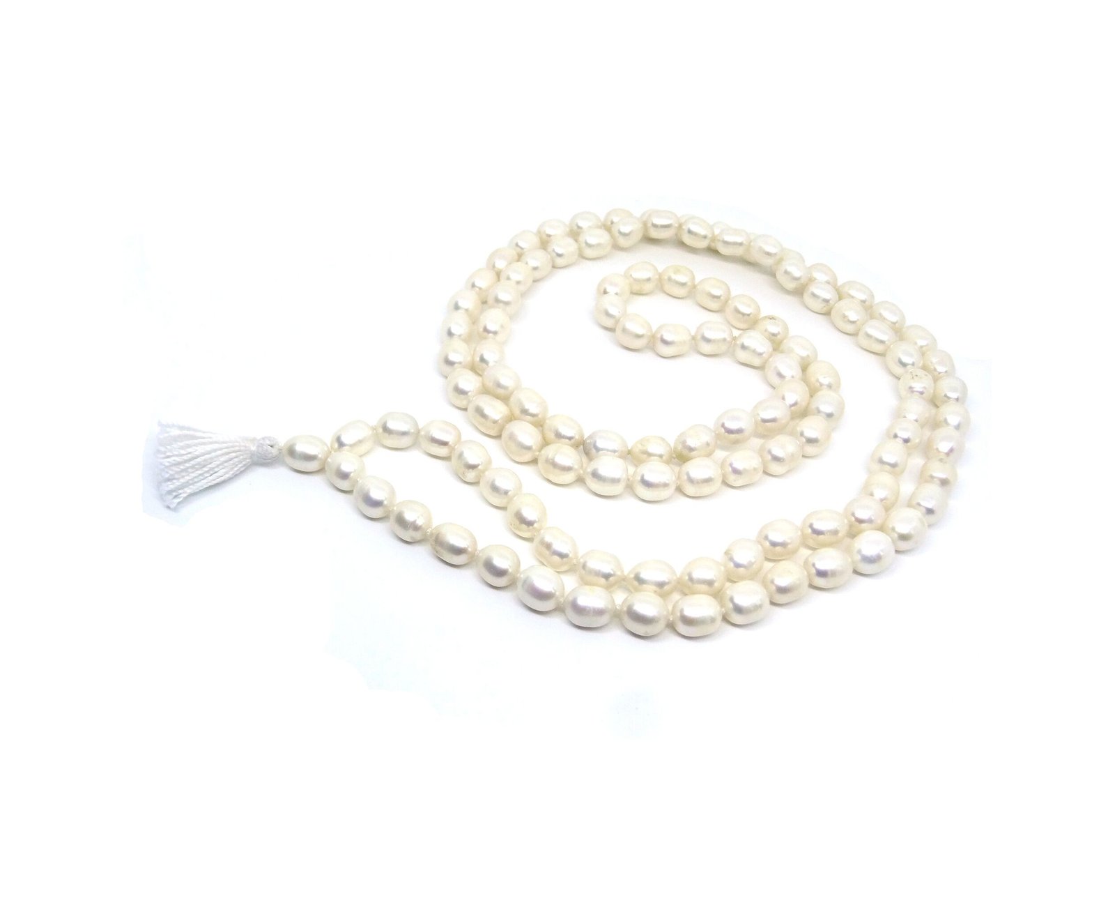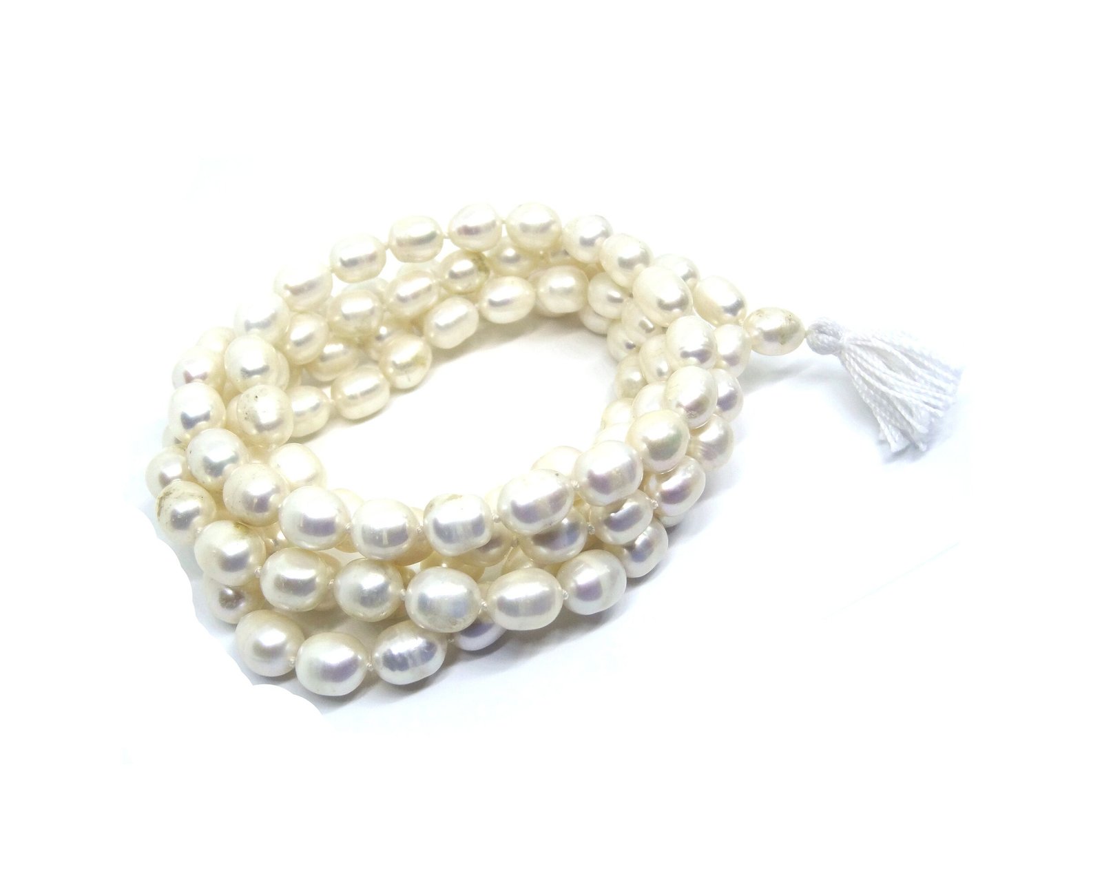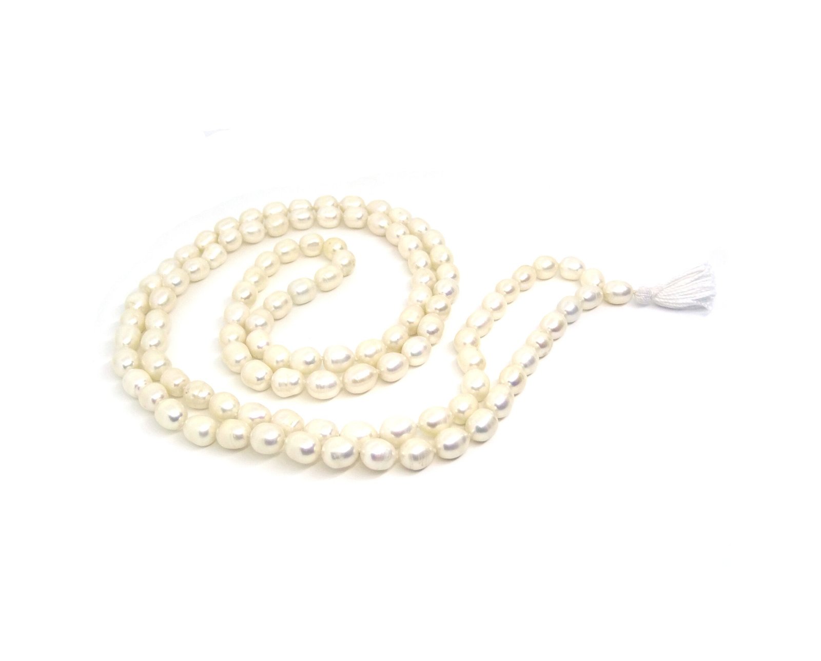 Natural Pearl 108 +1 Beads Mala Oval ( 8 MM )