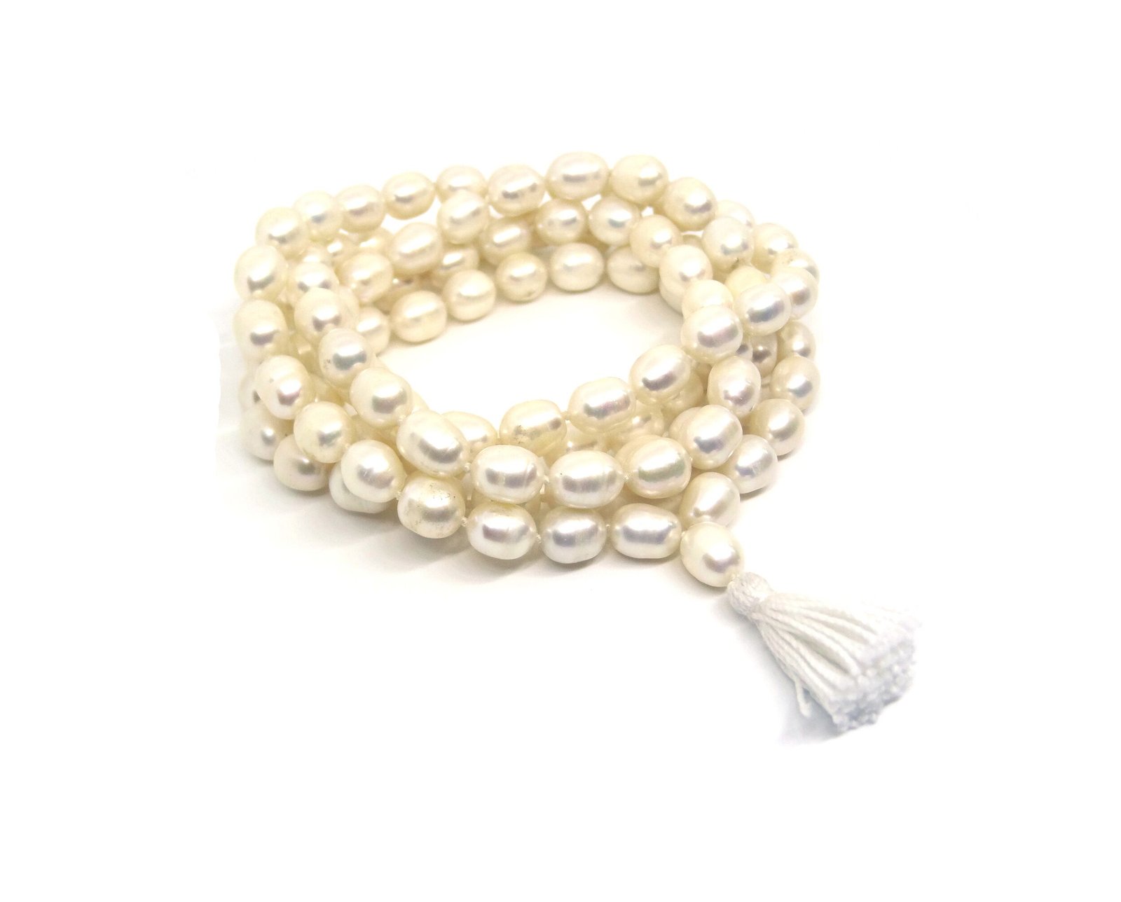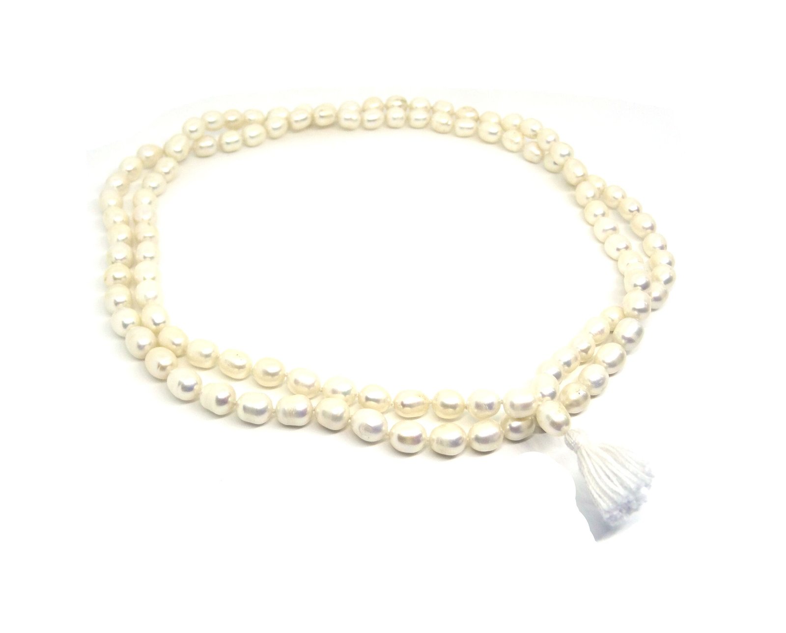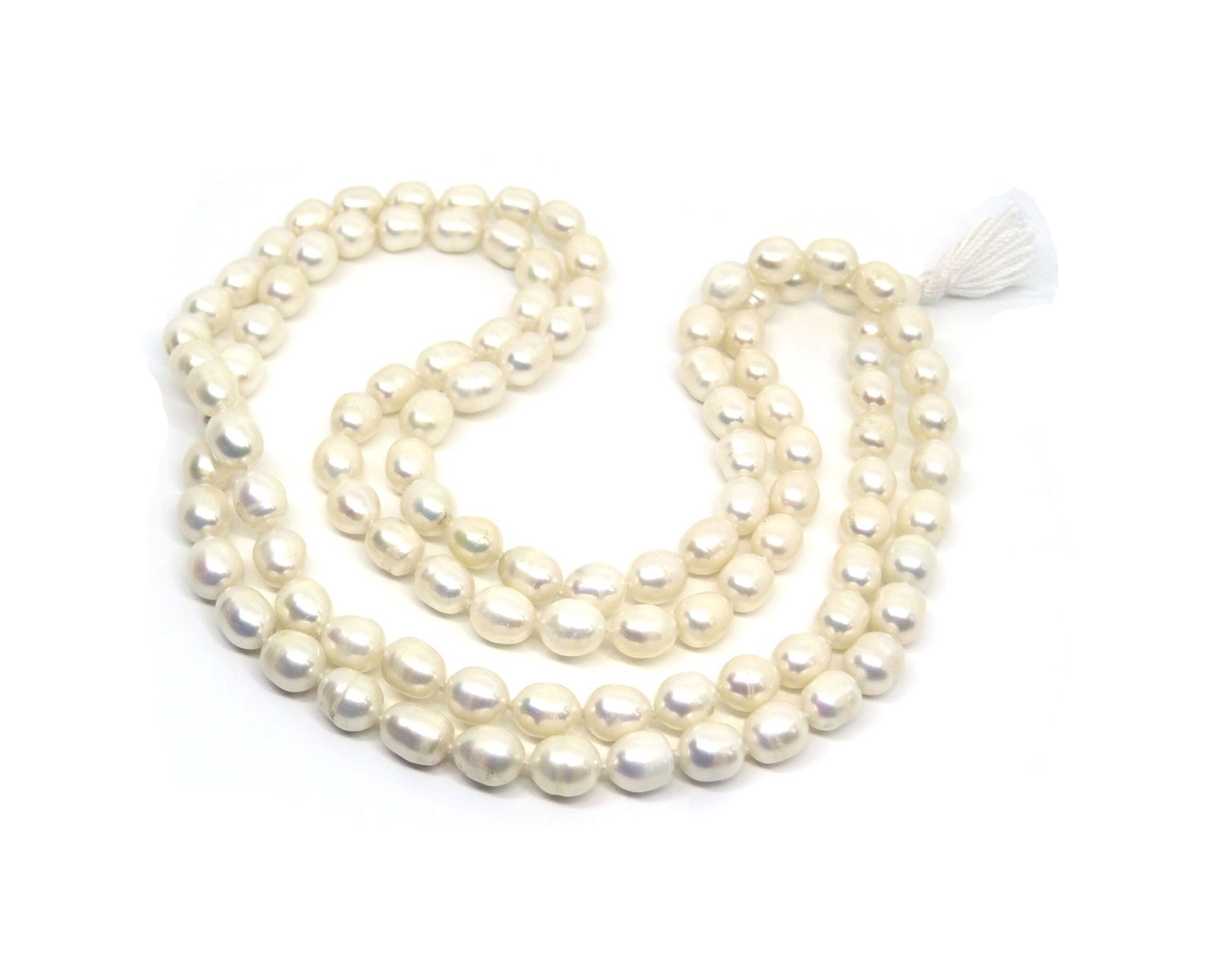 Natural Pearl 108 +1 Beads Mala Oval ( 8 MM )