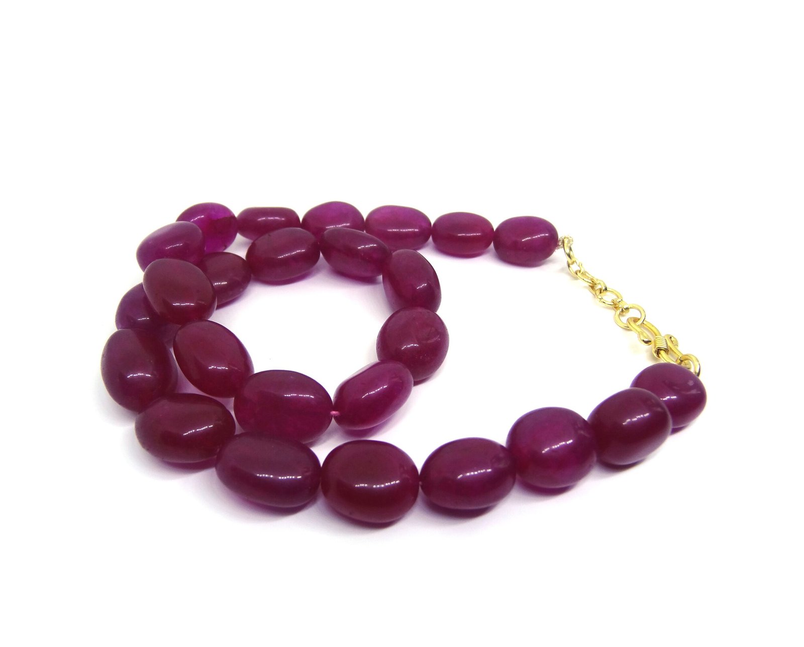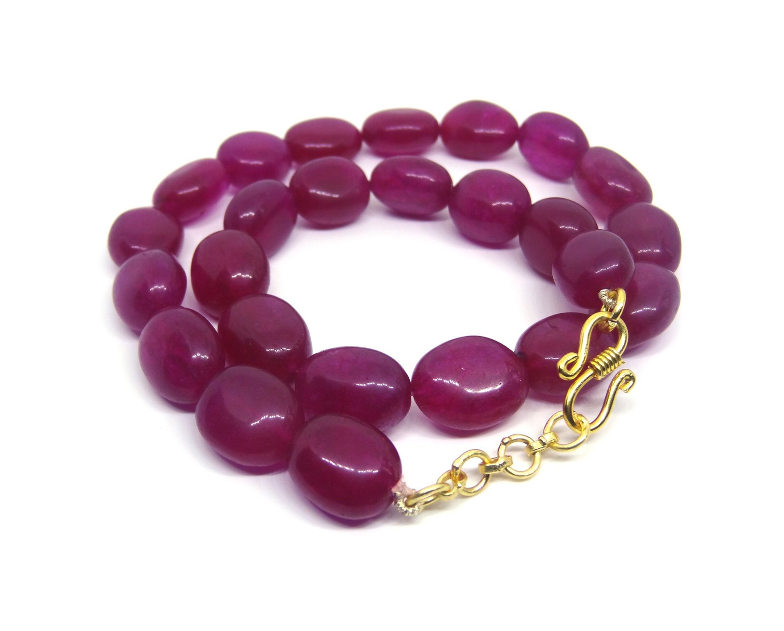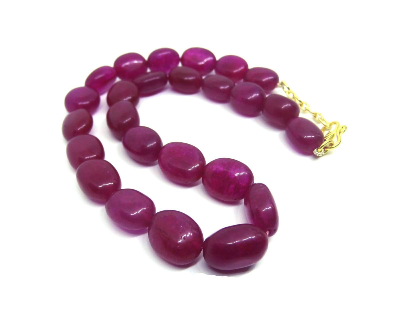 Look gorgeous with this Pink coloured Single strand necklace. Featured with Pink colored Pear shaped beads of jade gemstone. Product consists of natural beads. Goes great with weddings and can be worn with Sarees.