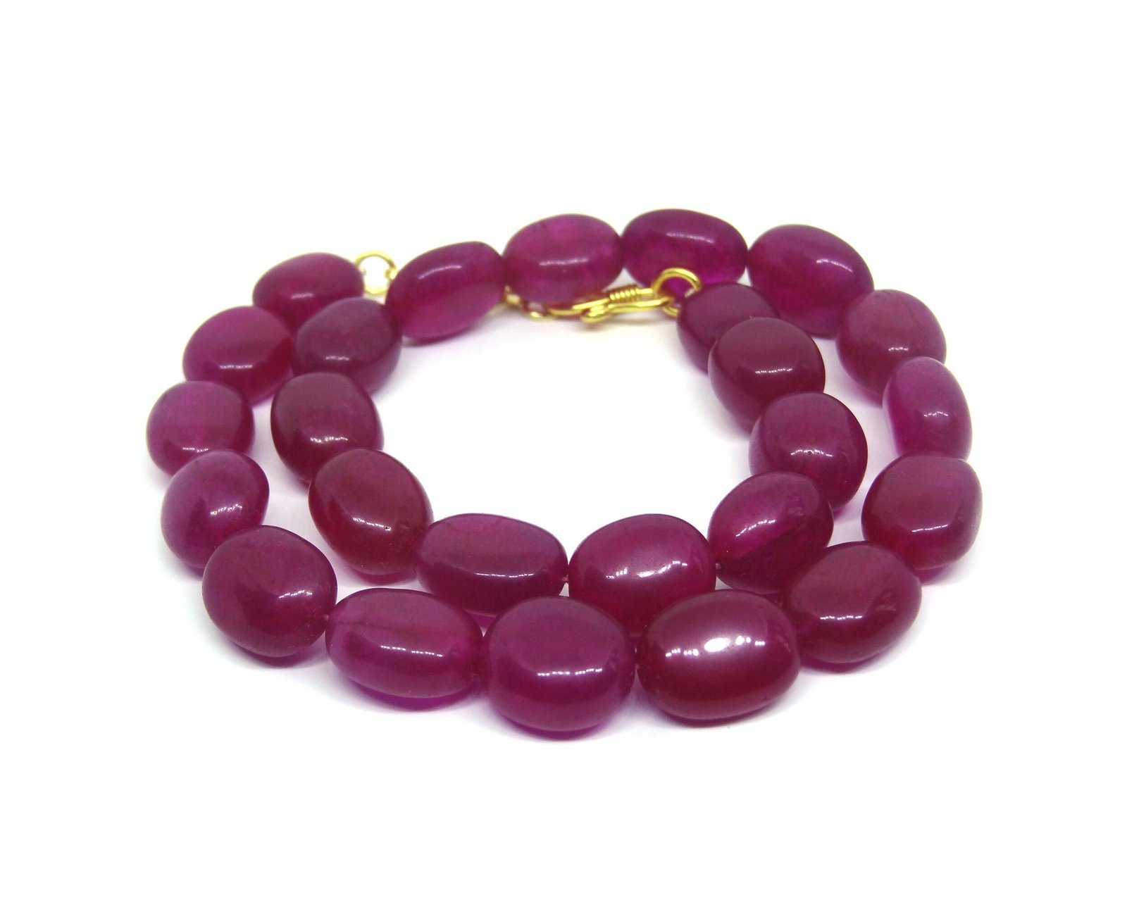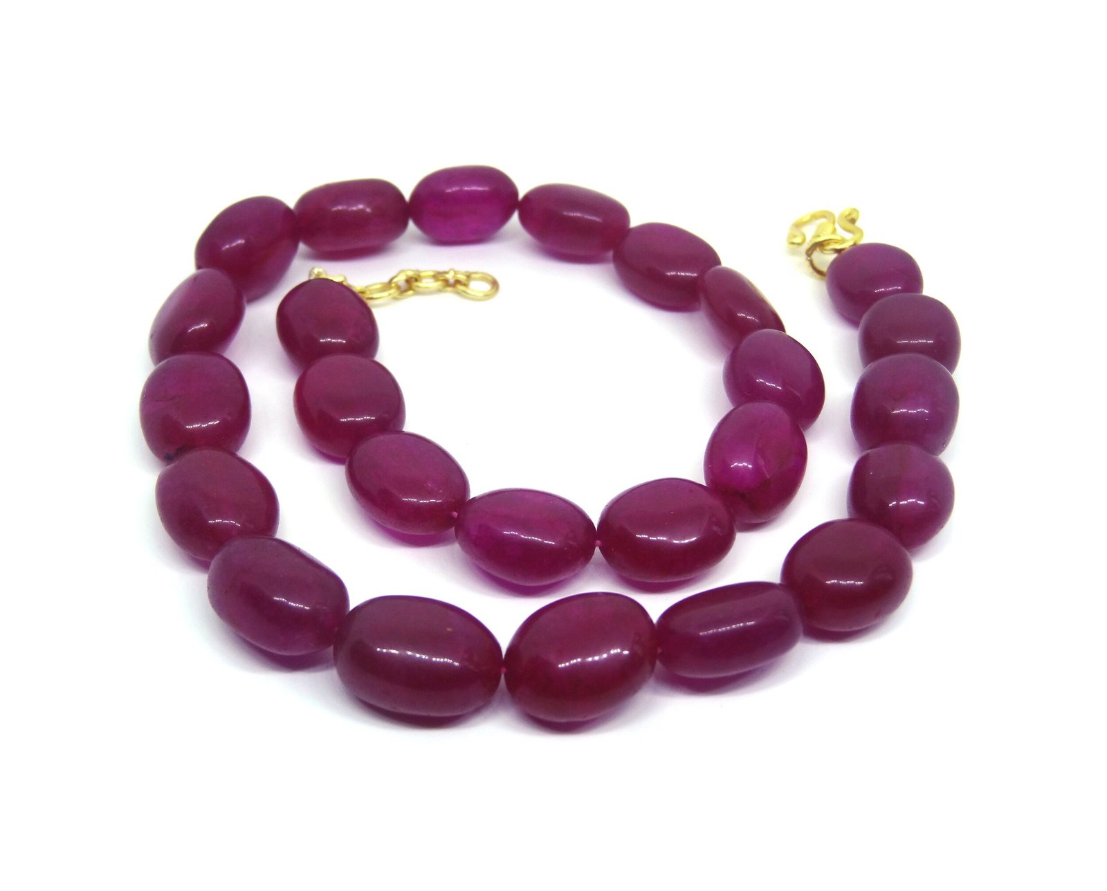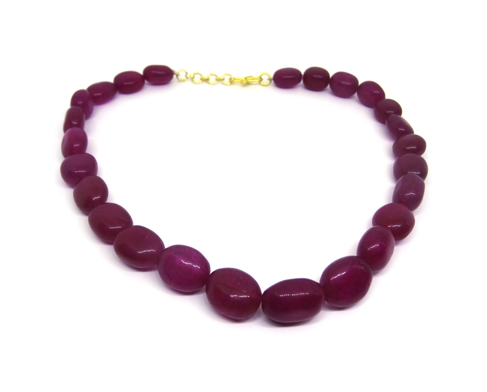 Look gorgeous with this Pink coloured Single strand necklace. Featured with Pink colored Pear shaped beads of jade gemstone. Product consists of natural beads. Goes great with weddings and can be worn with Sarees.