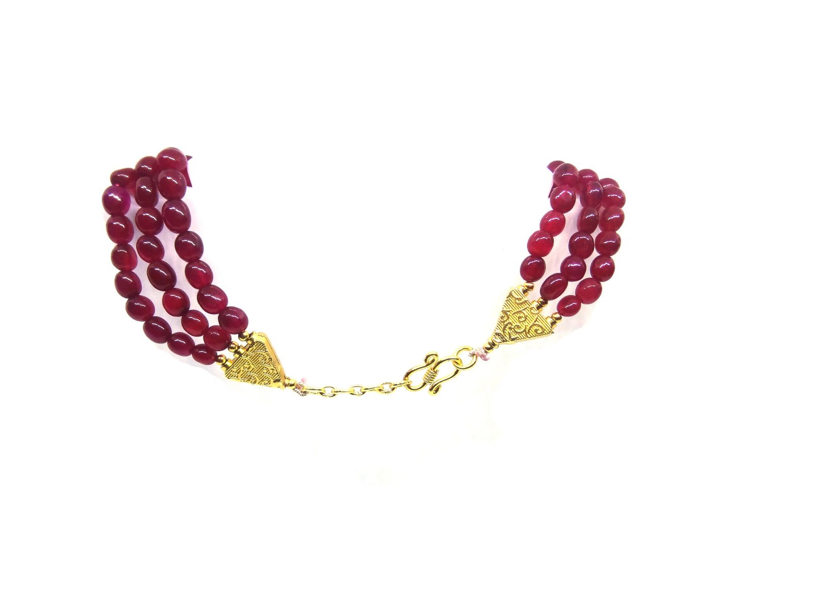 Look Gorgeous with this Pink coloured multi strand necklace. Featured with Pink colored faceted beads of jade quartz gemstone. Product consists of dyed natural beads. Goes great with Indian Wear and can be worn for weddings. Bead Size: 8 mm.